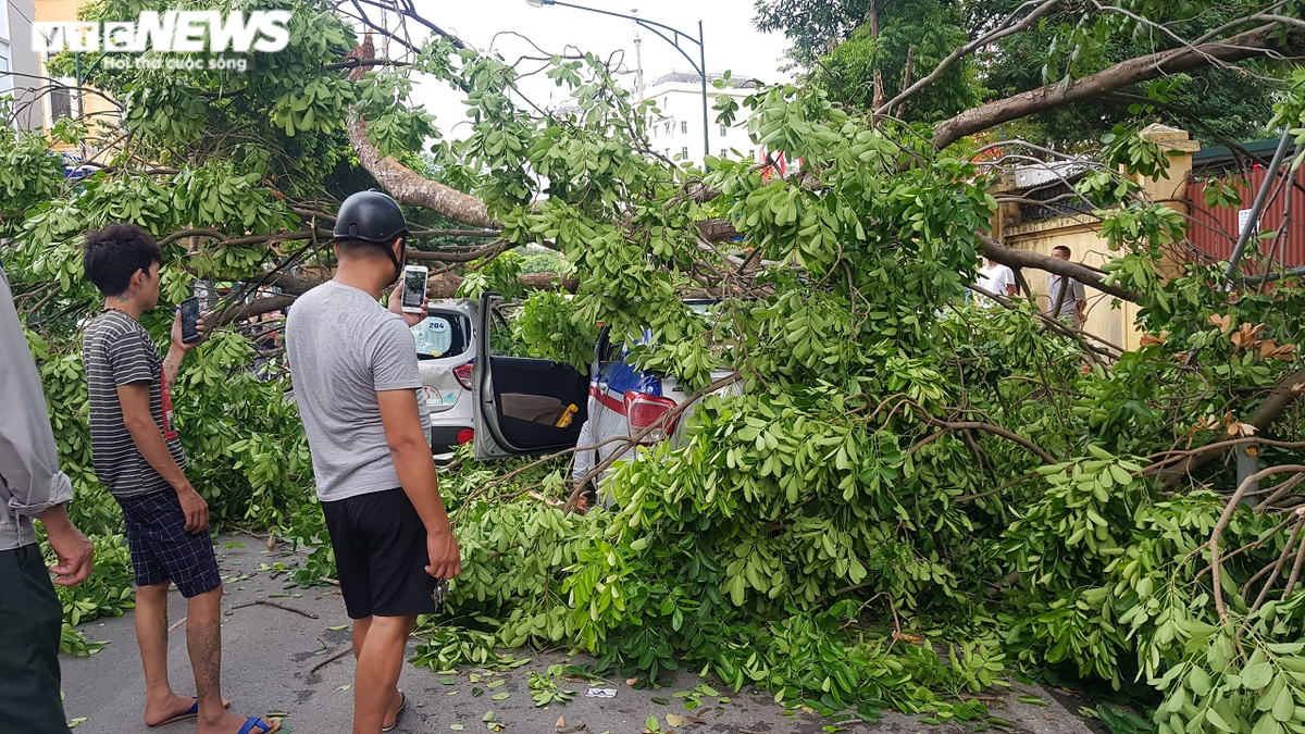 Theo thông tin ban đầu, khoảng 16h30, mưa lớn kèm theo gió mạnh khiến cành cây xà cừ cổ thụ trong khuôn viên Bệnh viện Trung ương Quân đội 108 gãy, rơi ra đường Trần Hưng Đạo (phường Bạch Đằng, quận Hai Bà Trưng, Hà Nội), đè trúng 3 ô tô và chắn ngang đường gây ùn tắc giao thông. Rất may không có thiệt hại về người.
