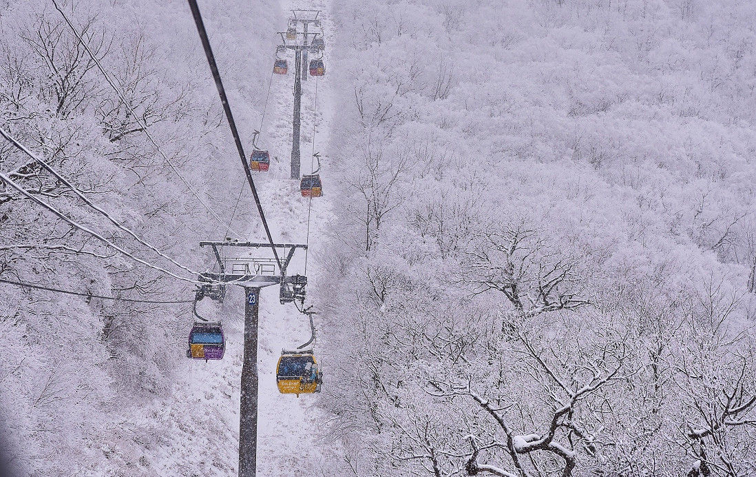 Từ cabin cáp treo, cảnh tuyết phủ khắp cây cối và núi đồi hiện ra ngay trước mắt du khách, tưởng như chỉ vươn tay ra là chạm đến.