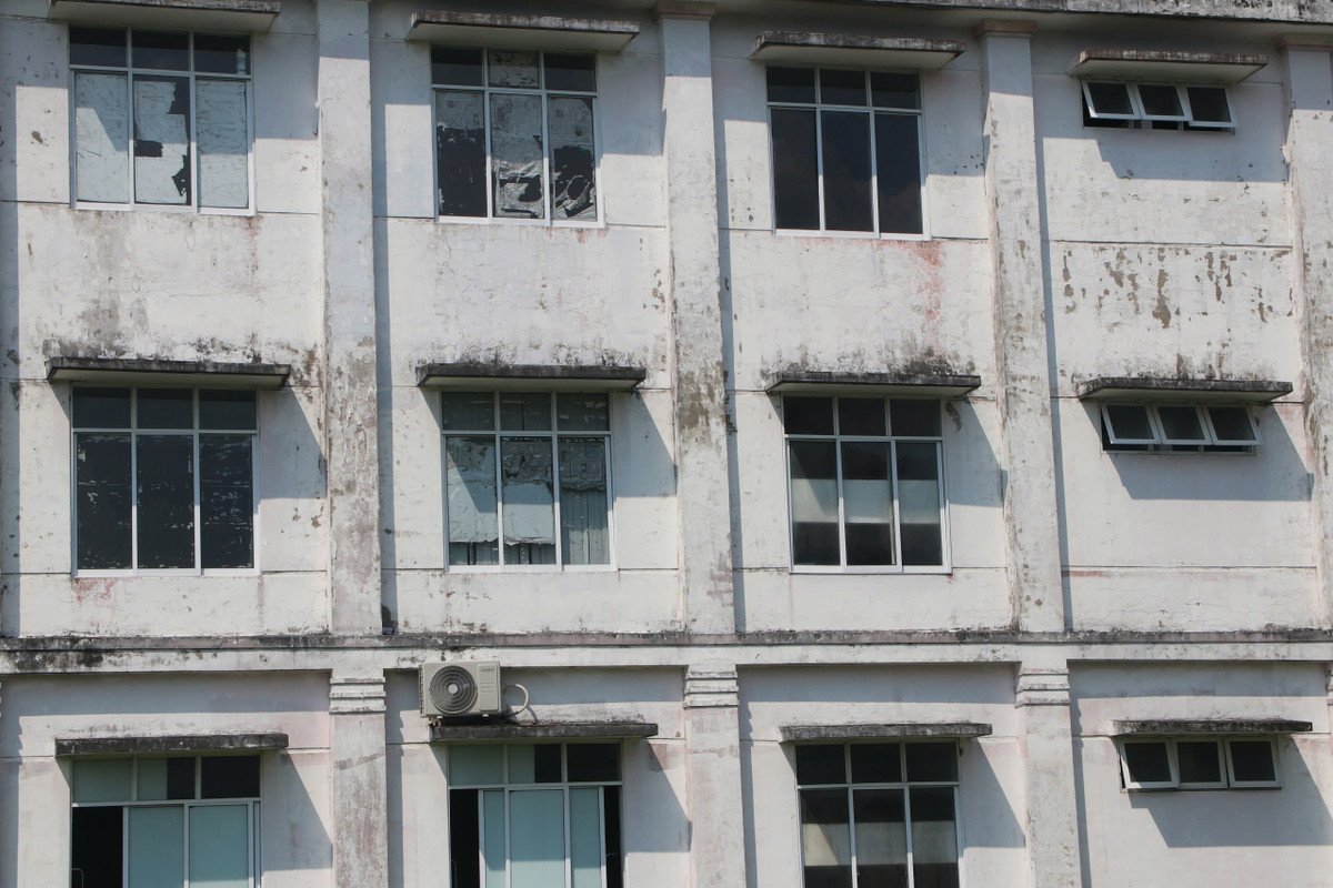 Một khu nhà trong bệnh viện bị bỏ không, hư hỏng và xuống cấp.