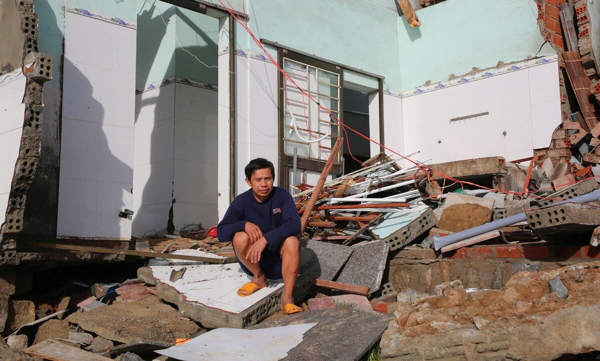 Sau một đêm tránh trú bão, nhiều người dân ngụ cư ven bờ biển Châu Me, phường Sa Huỳnh, trở về nhà và thất thần khi đập vào mắt mình là khung cảnh đổ nát.