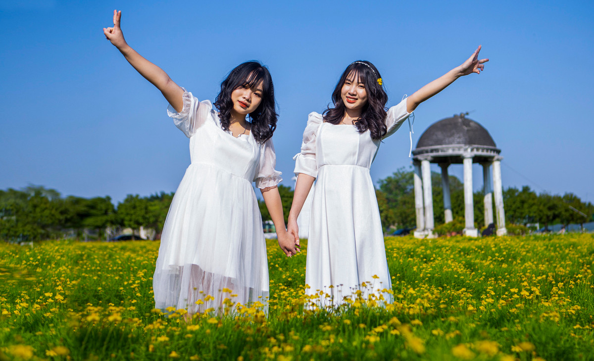 Các cô gái cho biết có cảm giác như lạc vào xứ sở thần tiên bởi vẻ đẹp lãng mạn của hàng triệu bông cúc sao băng vàng rực rỡ.
