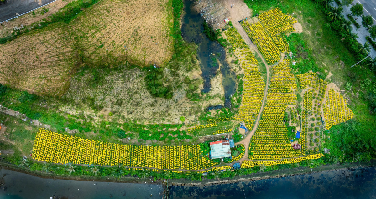 Từ trên cao, cánh đồng hoa vàng trải dài, hàng dừa thẳng tắp và con sông... khiến những ai đến đây cảm tưởng đang lạc vào chính thủ phủ hoa cúc tại các tỉnh miền Tây như TP Sa Đéc (Đồng Tháp), TP Mỹ Tho (Tiền Giang)...