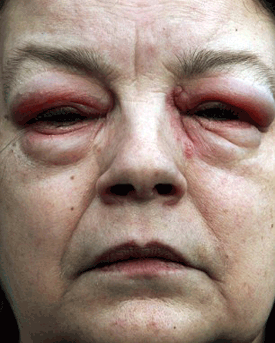 Một người phụ nữ 57 tuổi sau khi đến buổi hẹn khám nhãn khoa định kì đã đột nhiên trông như "quái vật" do dị ứng với thuốc nhỏ mắt.