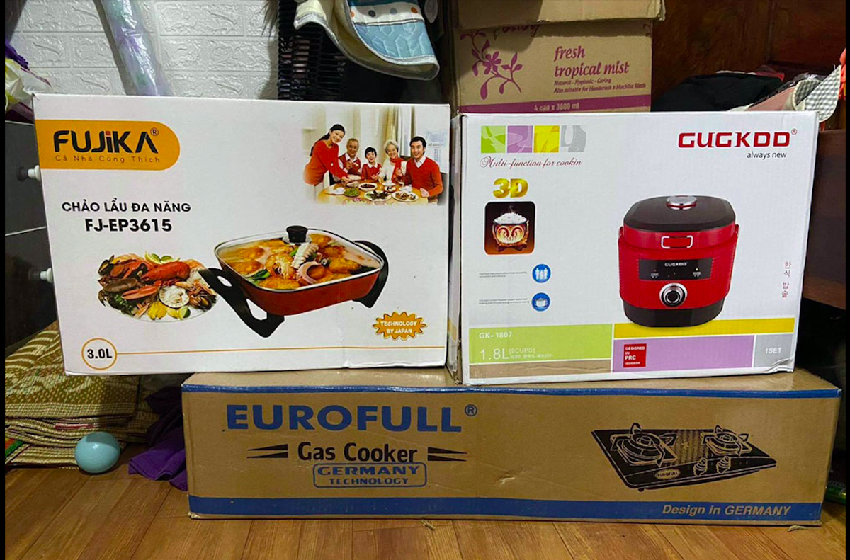 Khi ngỏ ý muốn mua, họ ngã giá 5 triệu cho tất cả nhưng tôi trả 2 triệu họ cũng đồng ý bán. Tuy nhiên, khi nhờ người có kinh nghiệm kiểm tra, tất cả là hàng nhái, riêng chiếc bếp không thể sử dụng. Hỏi quanh nhà hàng xóm, nhiều nhà cũng gặp tình trạng bị mời chào tương tự”.
