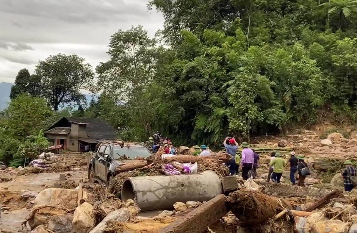Tại đây, lực lượng chức năng huy động hàng trăm dân quân tự vệ, lực lượng công an, quân đội tham gia tìm kiếm nạn nhân bị lũ cuốn, khắc phục hậu quả do mưa lũ.
