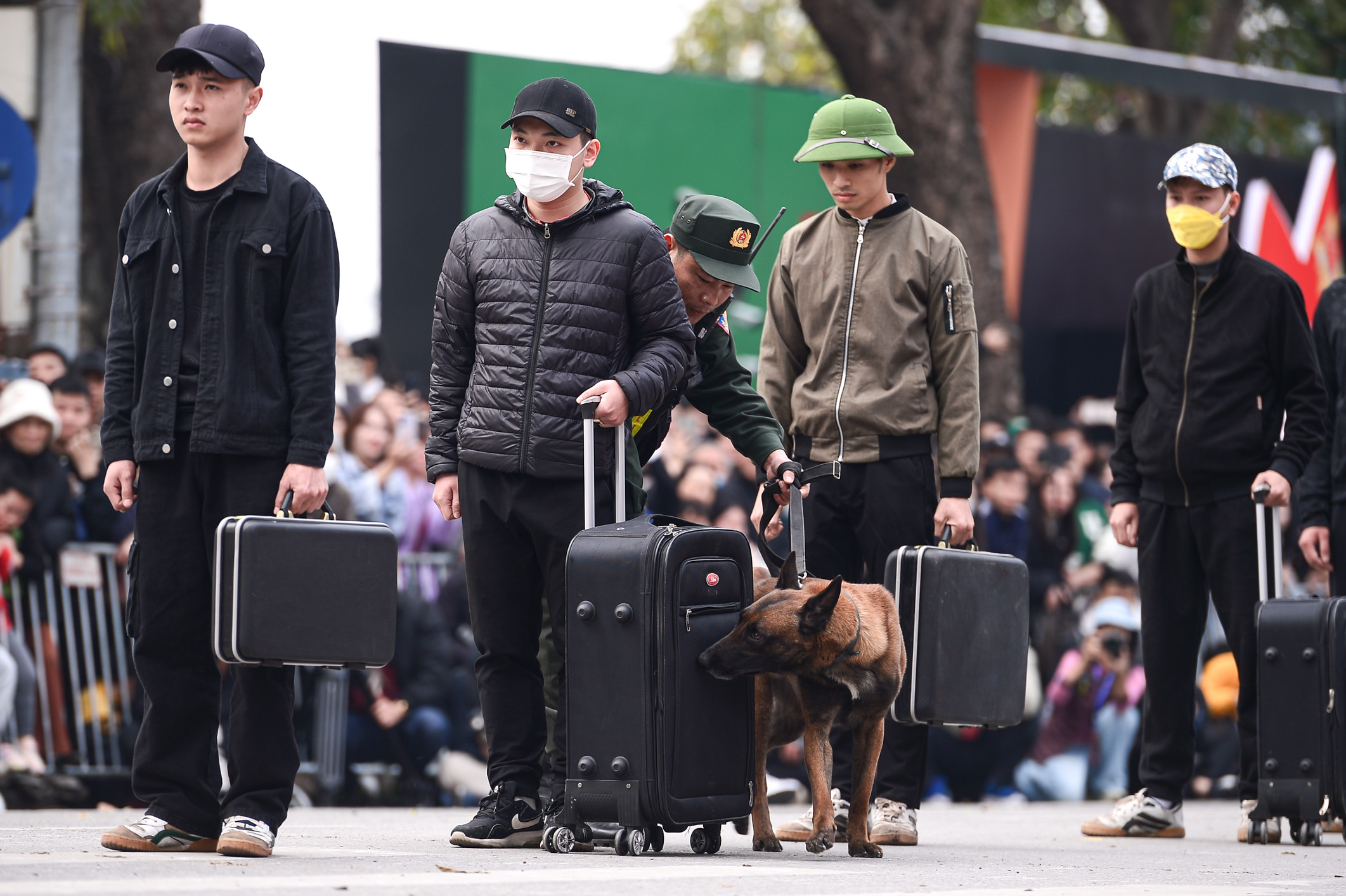 Màn biểu diễn của chó nghiệp vụ thuộc Bộ Tư lệnh Cảnh sát Cơ động thu hút sự quan tâm của người dân Thủ đô. Trong khoảng 30 phút, những chiến sỹ đặc biệt này khiến khán giả trầm trồ với tài bật nhảy qua rào lửa, thực hiện theo khẩu lệnh, hiệu lệnh của chiến sỹ cảnh sát.