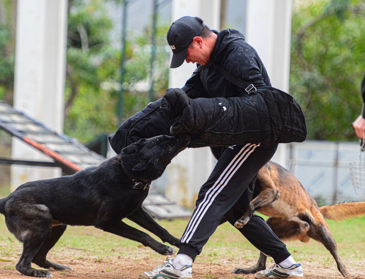 Trong ảnh là tình huống cảnh khuyển tấn công, trấn áp đối tượng có hung khí.
