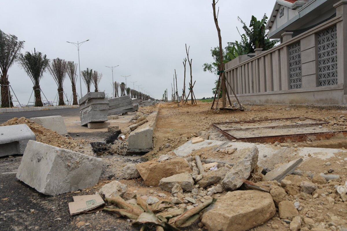Đáng chú ý, hơn một nửa phần đường còn lại bắt đầu từ Thuận An đến Phú Mỹ, tiến trình thi công chỉ đang đạt khoảng 40-50% tiến độ xây lắp; khoảng 1km đường chỉ vừa mới đổ đất và chưa được làm phẳng, hạng mục cống thoát nước chưa đâu vào đâu.