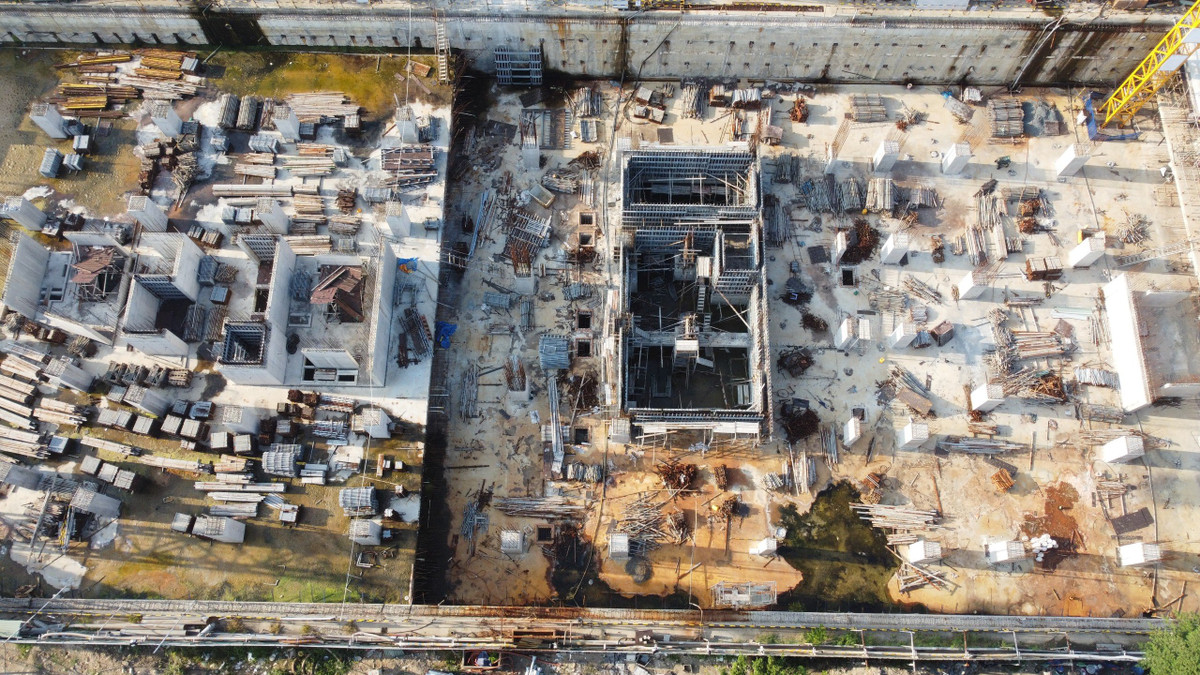 Bên trong khu đất một số công trình làm khung sắt và xây kiên cố, chưa hoàn thiện.