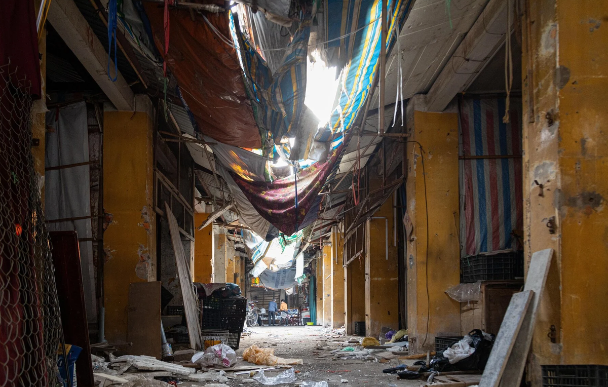 Cảnh đổ nát, hoang tàn tại chợ Mai Động sau khi gần 300 tiểu thương chuyển đi.