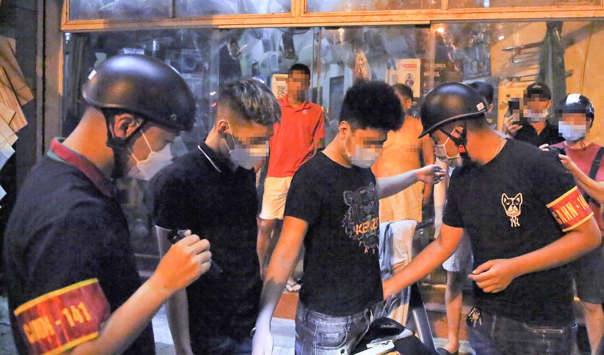 Cũng liên quan đến hành vi vi phạm trật tự an toàn giao thông, hơn 22h cùng ngày, Trung tâm thông tin chỉ huy 113 Công an TP Hà Nội nhận được tin báo có 1 nhóm thanh niên khoảng 30-40 xe máy, không đội mũ bảo hiểm, lạng lách đánh võng tại đường Thành Trung (Gia Lâm, Hà Nội), có cầm theo dao phóng lợn, phớ, đao.