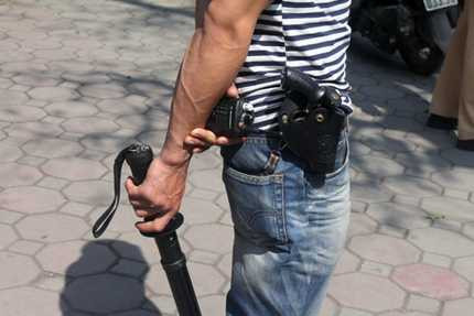 | Công cụ hỗ trợ gồm dùi cui, bộ đàm, súng bắn điện, còng số 8... là vật bất ly thân với cảnh sát làm nhiệm vụ trong tổ công tác. |