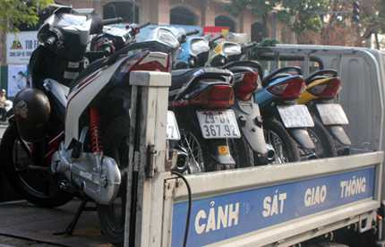 | Những chiếc xe vi phạm bị đưa về bến bãi. |
