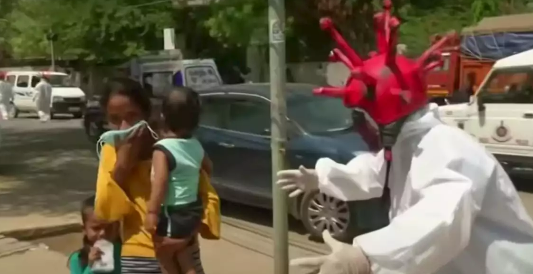 Cảnh sát ở New Delhi cải trang và mặc bộ đồ hình virus để khuyến cáo người dân tuân thủ quy tắc cách ly xã hội. Đây được xem là sáng tạo mới nhất của lực lượng chức năng Ấn Độ trong nỗ lực đảm bảo lệnh phong tỏa được thực thi.