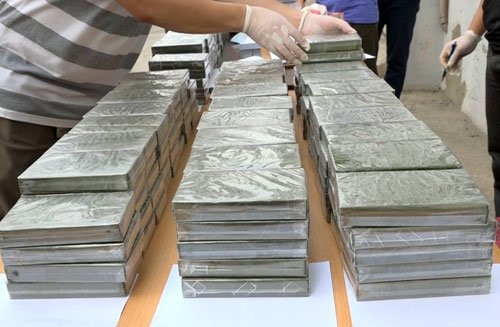 Cảnh sát kiểm tra số ma tuý giấu ở ốp gương.
