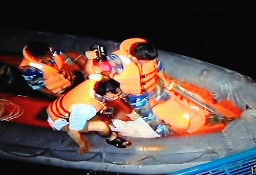 | Cảnh sát biển cứu đoàn cán bộ khảo sát. Ảnh: C.S.B |