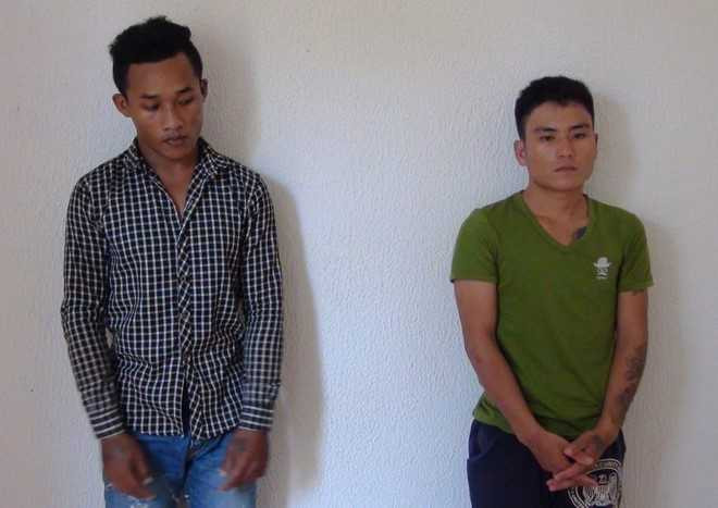 ![]() Hòa và Thái (từ trái qua) gây ra vụ cướp dây chuyền của người phụ nữ bán xôi. Ảnh: Hồ Giang. |