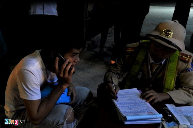 CSGT lập biên bản xử phạt tài xế. (Ảnh: Tiến Đạt)