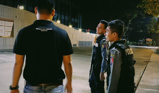 Còn chuyện an ninh, chủ nhà bố trí ít nhất 4 cảnh sát có vũ trang túc trực xung quanh khách sạn, đặc biệt là khu ra vào và mặt tiền. Súng máy và các công cụ hỗ trợ đều được cảnh sát trang bị đầy đủ trên người.