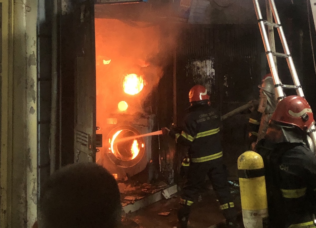 Tới nơi, chỉ huy chữa cháy nhanh chóng phân công cán bộ, chiến sĩ triển khai các đội hình tìm kiếm người bị nạn còn mắc kẹt, đồng thời triển khai chữa cháy, ngăn chặn cháy lan.