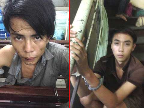 | Hai tên cướp bị bắt giữ tại trụ sở công an phường |
