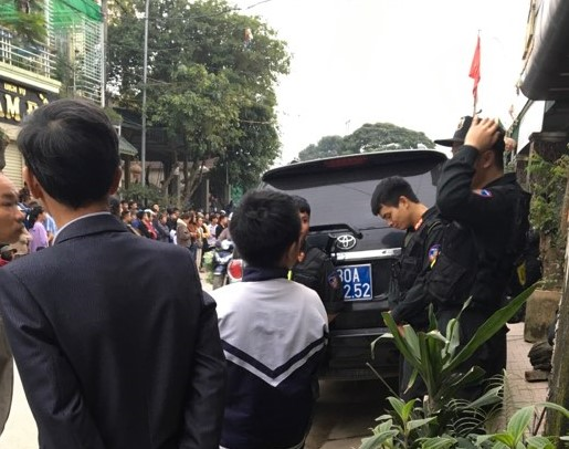 Hàng trăm người dân đứng xem lực lượng công an đánh án. (Ảnh: LKT)