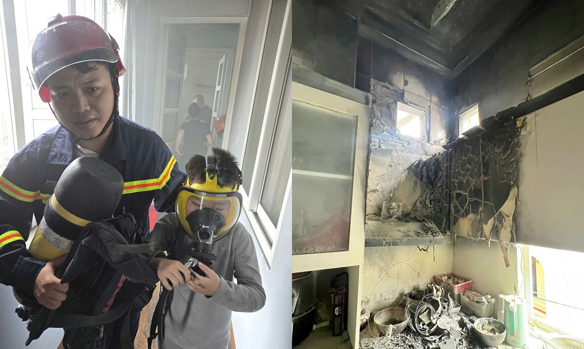 Tại hiện trường, đám cháy được xác định bùng phát từ khu vực bếp tại tầng 2. Do chứa nhiều vật liệu dễ cháy, khói đen đặc nhanh chóng bao trùm và lan lên các tầng trên.