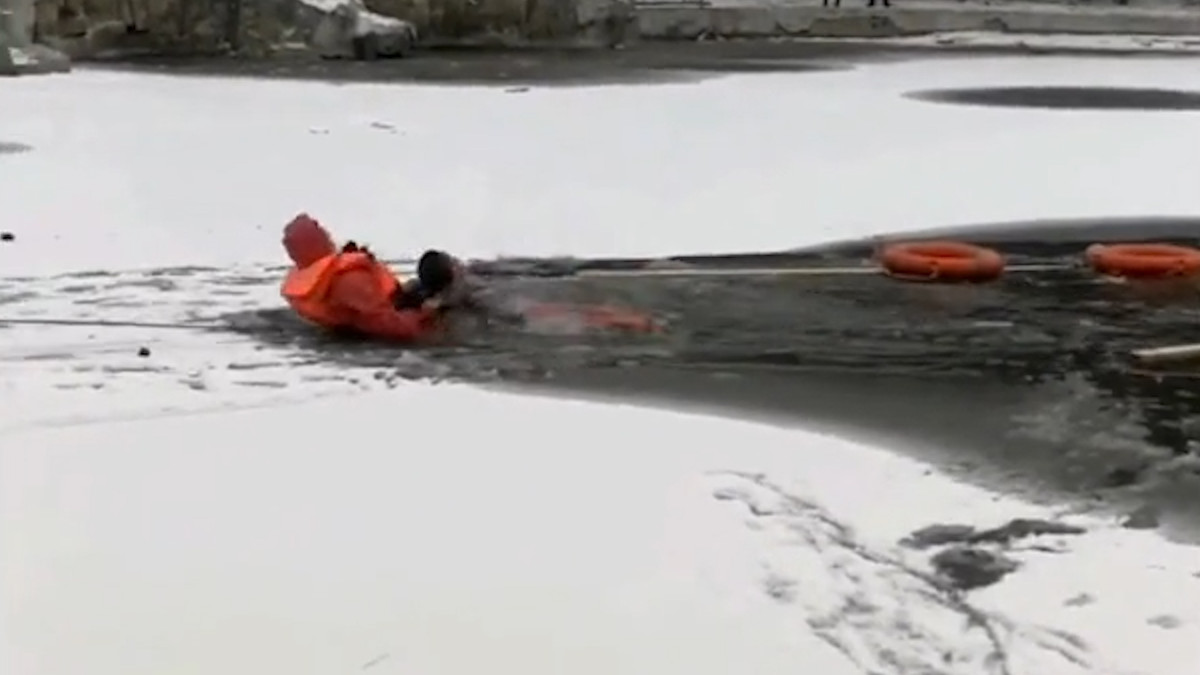 Vô tình rơi xuống hồ nước đóng băng, người đàn ông tại TP Trường Xuân (Cát Lâm, Trung Quốc) được lực lượng cảnh sát giải cứu kịp thời.