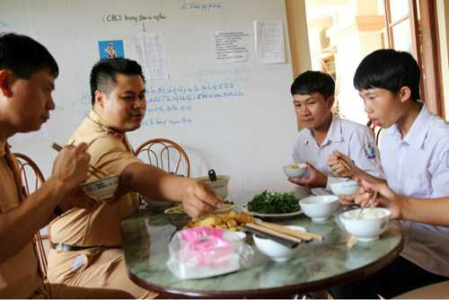 Theo lời kể, hai bạn này có hoàn cảnh gia đình khó khăn, không có người thân tại khu vực thi nên các cảnh sát giao thông đã mời về trụ sở cùng ăn cơm, nghỉ ngơi trước khi dự các môn thi buổi chiều.