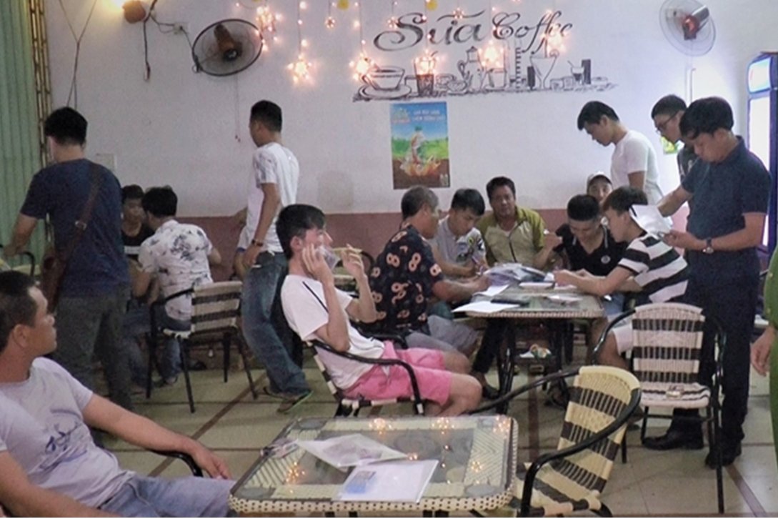 Cơ quan công an bắt quả tang nhiều đối tượng tham gia đánh bạc bằng hình thức cá độ bóng đá tại quán cà phê Sữa. (Ảnh: Công an Đà Nẵng)
