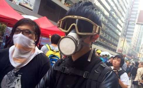 | Sinh viên Hong Kong biểu tình đeo mặt nạ chống hơi gas - Ảnh: SCMP |
