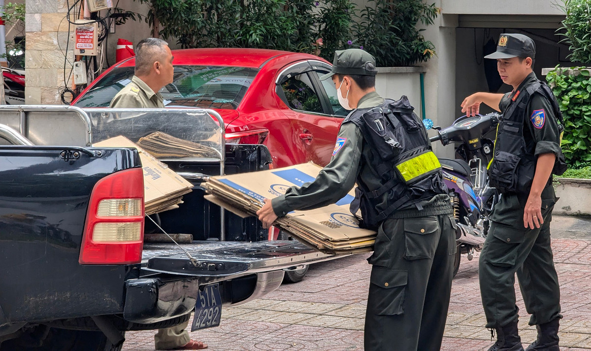 Đến 15h, lực lượng chức năng đã đưa nhiều thùng các tông từ căn biệt thự lên xe cảnh sát rồi rời đi.