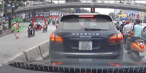| Người thanh niên bất ngờ ngoặt tay lái. |