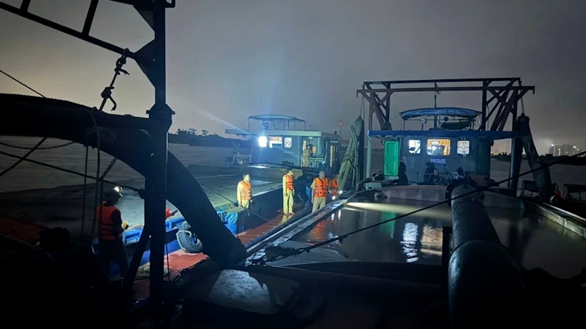 Cảnh sát mật phục bắt 'cát tặc' lúc rạng sáng trên sông Hồng
