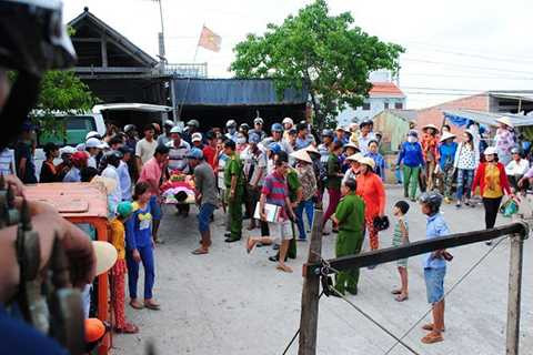 | Người dân theo dõi vụ việc sau khi công an phá trường gà - Ảnh: Đ.T. |