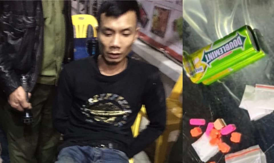Trước sự hung hãn của Du, lực lượng công an phải nổ súng bắn chỉ thiên để khống chế, bắt giữ. Kiểm tra bên trong túi áo khoác của Du, công an thu giữ 8 túi nilon chứa chất tinh thể màu trắng và 10 viên nén nhiều màu sắc nghi là ma túy.