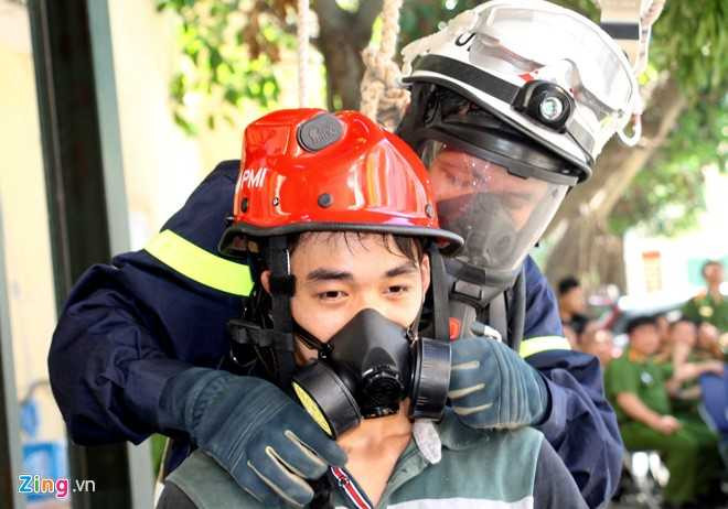Nếu cứu người trong môi trường có khí độc, thiếu oxy, chiến sĩ PCCC sẽ đeo mặt nạ hoặc bình thở cho họ, trước khi đưa nạn nhân ra ngoài.
