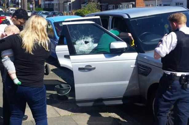 | Cảnh sát phải dùng dùi cui đập vỡ cửa kính để cứu đứa bé ra ngoài |