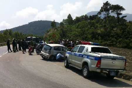Sau cú va chạm, chiếc xe Kia morning bất ngờ mất lái, đâm vào lề đường. Phương tiện vừa dừng lại, lợi dụng đường đồi núi, lái xe và một người ngồi trên xe bỏ chạy vào rừng.