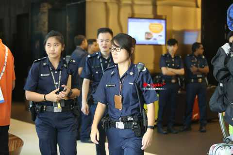 | Lực lượng cảnh sát Singapore siết chặt các vòng để người lạ không thể tiếp cận cầu thủ Việt Nam |