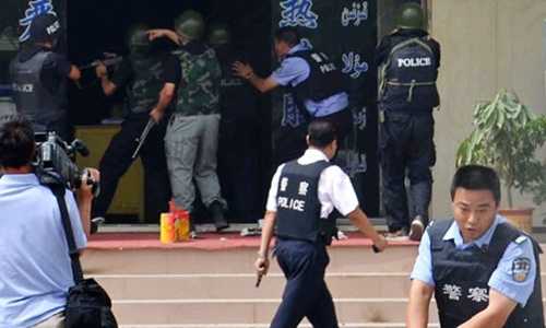 | Cảnh sát Trung Quốc trong một cuộc đụng độ với những kẻ nổi loạn ở Tân Cương năm 2011 |