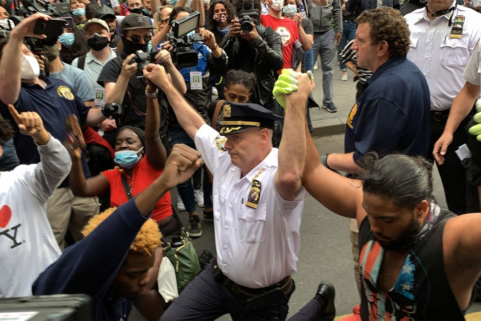 Video: Cảnh sát trưởng New York quỳ gối, ôm người biểu tình