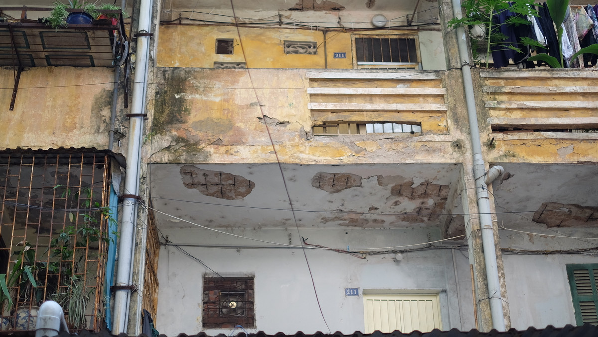 “Ở đây chỉ còn nửa non những người không đủ tiền mua nhà khác thì phải ở lại. Còn lại phần lớn đã rời đi và cho thuê với giá rẻ từ lâu rồi. Họ không chịu nổi mối lo sợ tường vữa một ngày nào đó sẽ rơi đè người”, một cư dân sống ở tòa B6, tập thể Kim Liên nói.