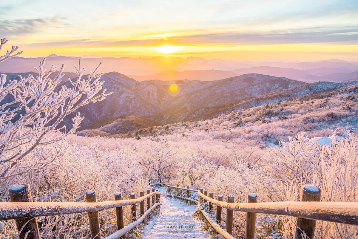 Khi tuyết rơi nhiều, núi Deogyusan trở thành điểm đến cực thu hút du khách bởi khung cảnh tuyết trắng đẹp đến thẫn thờ. Trải nghiệm một chuyến đi bộ xuyên tuyết trên núi Deogyusan, du khách sẽ được ngắm nhìn thế giới tuyết trắng mênh mông với những băng tuyết mang vẻ đẹp mong manh, thanh khiết.