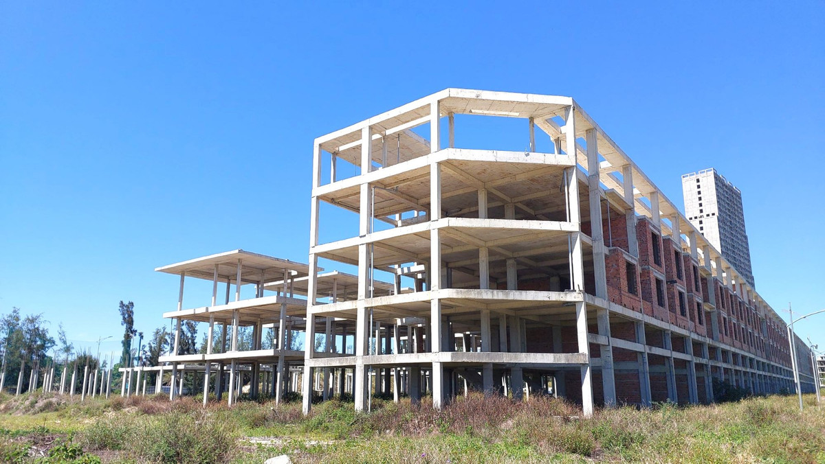 Nhiều công trình xây dựng gần hoàn thiện phần thô rồi bỏ không nhiều năm nay, hệ thống sắt thép gỉ rét theo thời gian.