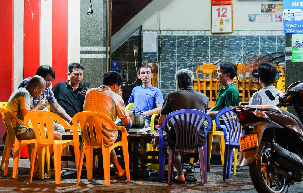 Tại đường Hoàng Sa (quận 3, TP.HCM), người dân bày biện bàn ghế ra vỉa hè để ăn nhậu.