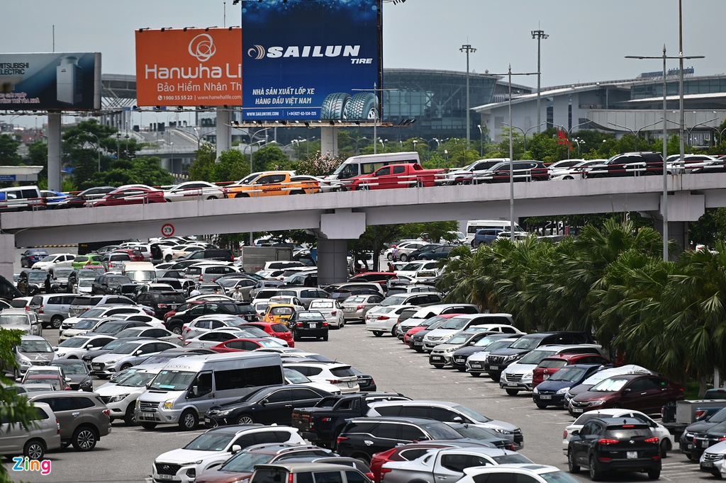 Dòng xe xếp thành nhiều làn nhích từng chút để vào trả khách là hình ảnh hiếm thấy ở Cảng hàng không quốc tế Nội Bài nhiều năm qua.