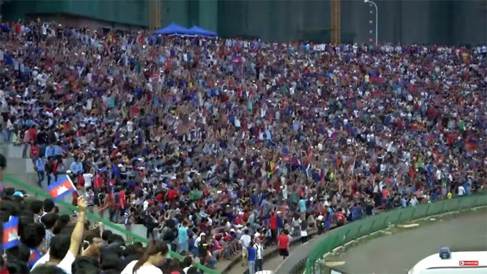 Tối 13/6, sân vận động Phnom Penh National Olympic có 70.000 chỗ ngồi của Campuchia chật cứng như nêm khi chủ nhà đá lượt trận thứ 2 vòng loại Asian Cup 2019 với Afghanistan. Trước đó 5 ngày, sân vận động này cũng không còn một chỗ trống khi đội chủ nhà đá giao hữu với Indonesia.