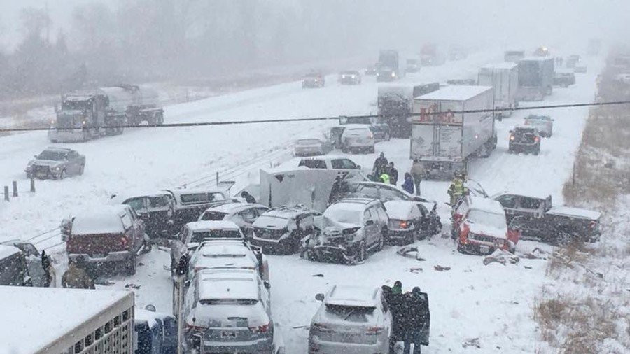 Hàng chục ô tô va chạm liên hoàn khi phóng nhanh trên đường tuyết tại bang Iowa, Mỹ hồi đầu tháng 2/2018.