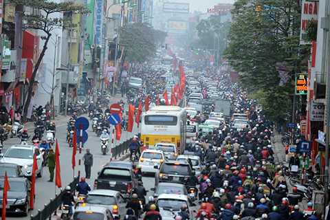 Lượng phương tiện tăng đột biến khiến cho giao thông của Hà Nội ở nhiều tuyến phố bị “tê liệt” trong nhiều giờ. Những con đường được coi là rộng rãi nhất thủ đô như Lê Văn Lương, Giảng Võ, Nguyễn Thái Học…cũng dường như quá nhỏ so với lượng phương tiện.